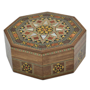 Caja Árabe Taracea Siria Octogonal - Tapa Estrella 8 Puntas - 11.5 cm