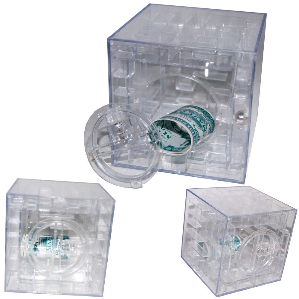 Caja Cubo Hucha Laberinto 3D - Compartimento Secreto -Metacrilato