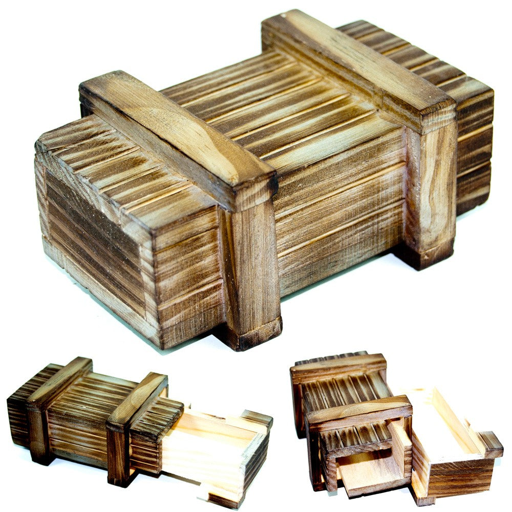 Caja de madera conocida por Caja Mágica o Caja Secreta. Es un auténtico juego de ingenio. Dispone de un compartimento secreto. No es nada fácil, pero es muy divertido. Ideal para reuniones y fiestas. Muy buenos acabados.
