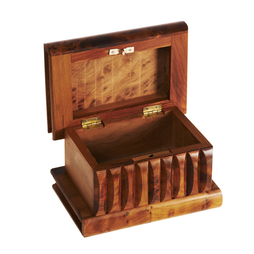 Caja de madera conocida por Caja Mágica o Caja Secreta. Es un auténtico juego de ingenio. Primero debemos de encontrar la llave, una vez hecho ésto debemos de encontrar la cerradura. No es nada fácil, pero es muy divertido. Ideal para reuniones y fiestas.