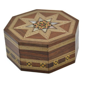 Caja Octogonal Taracea Siria - Diseño Mosáico - Modelo Al Raqa - 9 cm