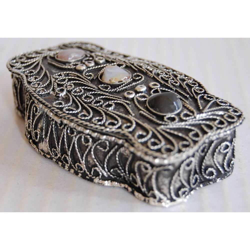 Cajita de alpaca forrada en terciopelo. Medidas: 10 x 6 x 2 cm.
