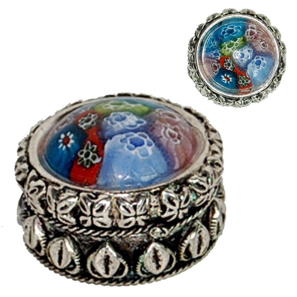 Cajita Alpaca Grabada Relieves Multicolo- Diseño Oriental -3,5cm