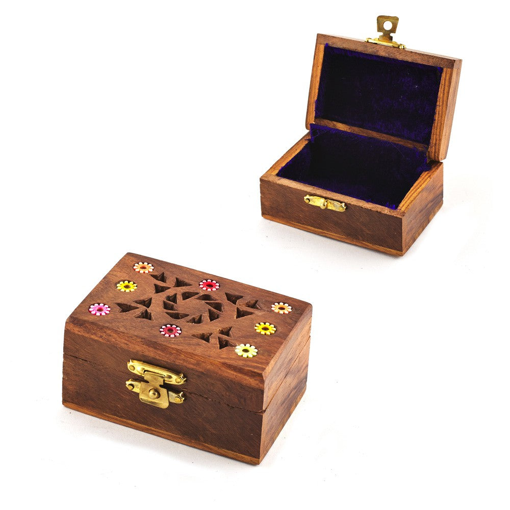 Cajita Madera Flores Incrustadas - Forrada Terciopelo - 7,5 cm