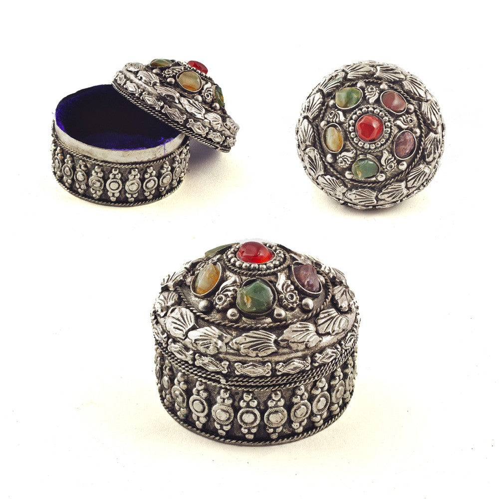 Cajita ovalada de alpaca con 6 piedras en relieve.
