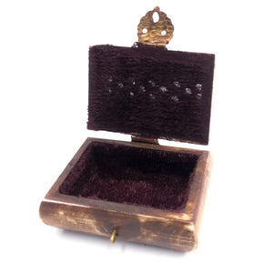 Cajita realizada artesanalmente con hueso. Forrada con terciopelo.