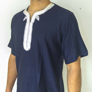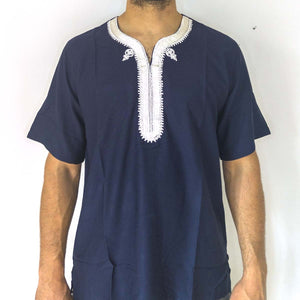 Esta bonita camisa Marroquí bordada al estilo árabe andalusí combina elegancia y comodidad. Su color Azul marino con bordados Blancos la convierte en una prenda única. Disponible en varias tallas, es perfecta para el verano debido a su agradable tela y diseño suelto, que favorece la transpiración.
