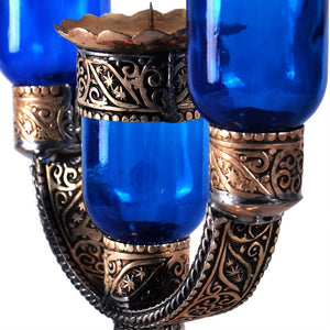 Candelabro Tres Brazos Alpaca y Cristal - 22 cm - Modelo 1
