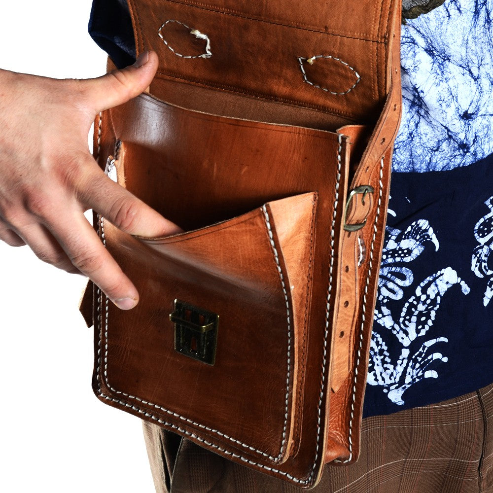 Cartera Artesana Cuero - Gran Calidad - 2 Compartimentos - 27 cm