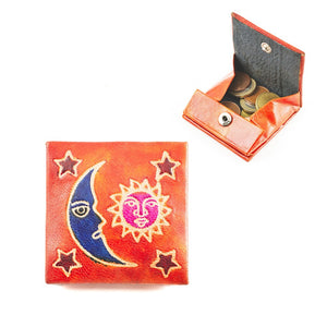 Carterita de piel con diseños surtidos ideal para monedas.Disponible en varios diseños, si desea alguna en especial indíquelo al realizar el pedido.Cierre tipo clip.Medidas: 7 x7 cm