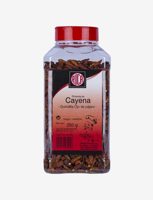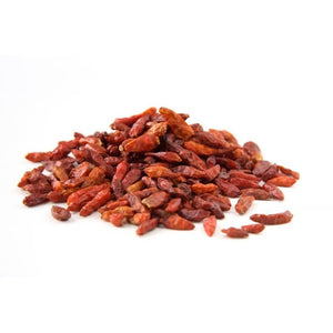 Son los frutos maduros, sanos, limpios y desecados del Capsicum frutescens, Capsicum baccatum y Capsicum fastigiatum. Pimiento de color rojo y sabor intensamente picante, se cultiva ampliamente por todo el mundo, por lo que los países de origen son muy diversos: India, China, Malawi, Perú, etc.