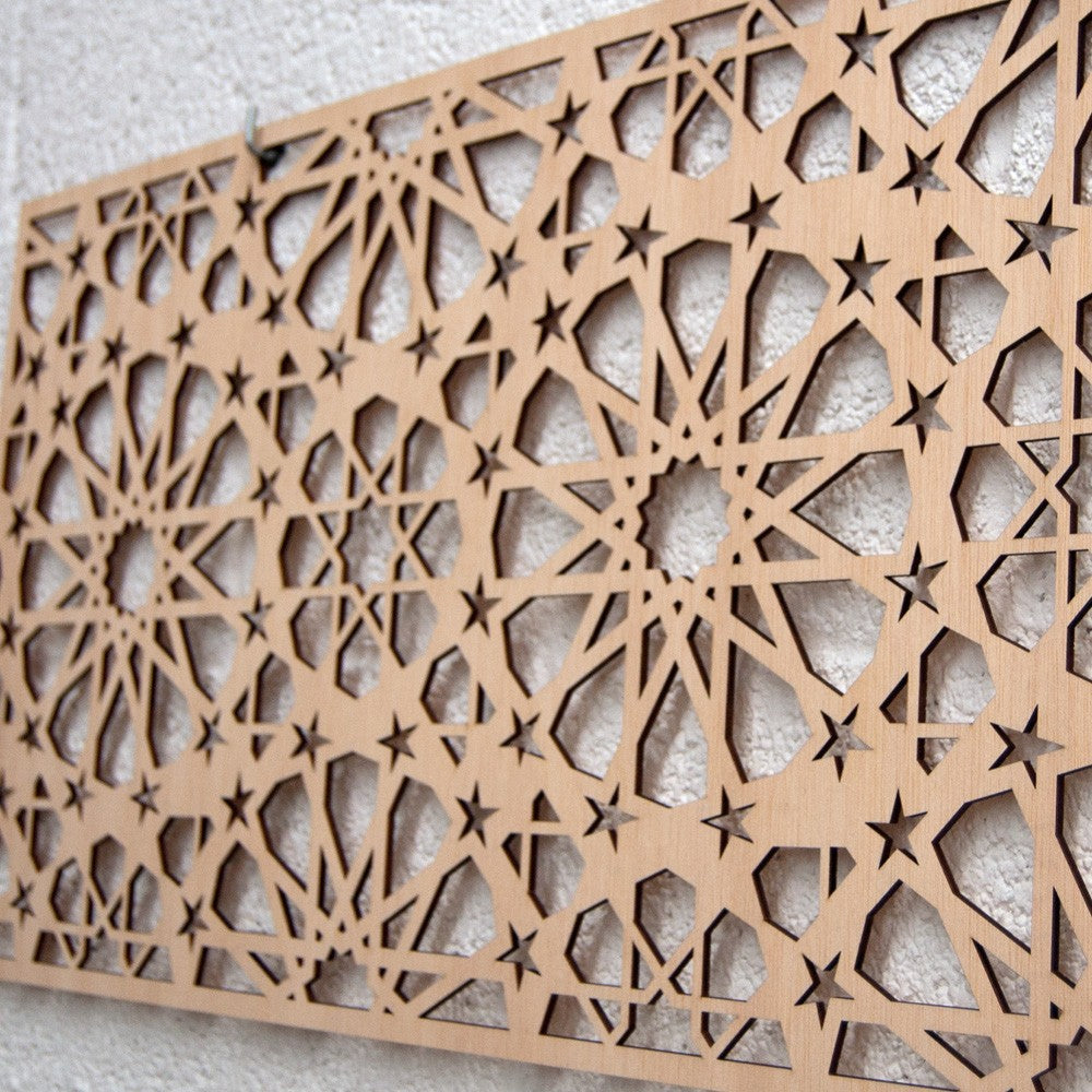 Se puede usar como cabecero de cama o cuadro de pared. Celosía de madera árabe ideal para decoración andalusí.