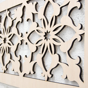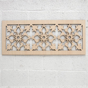Celosia cortada por láser en madera okumen de 1cm (10mm), Al Natural.