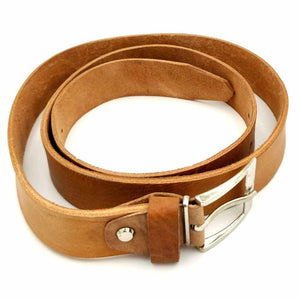 Cinturón de Cuero Artesanal - Marron Claro - Marroquinería - Hebilla Metal - Modelo Hakkama