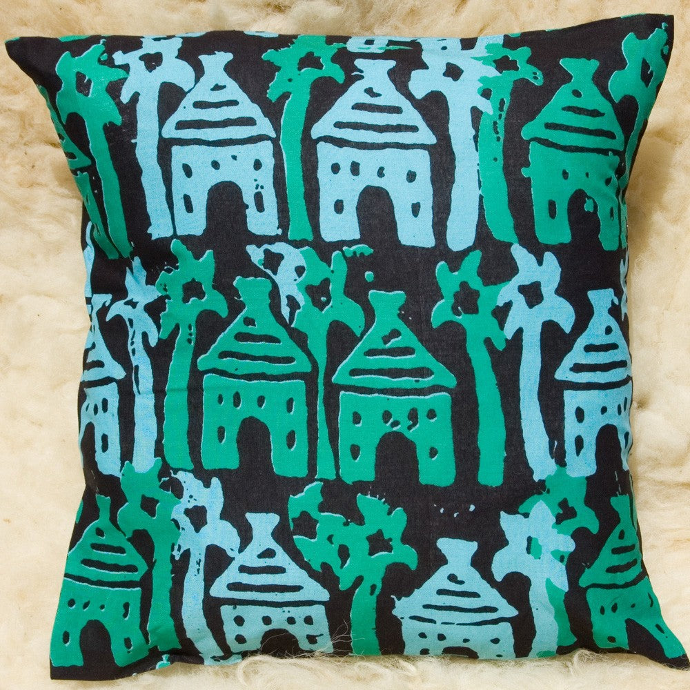 Cojín Africano Etnico- Tela 100% Algodón - Diseño Casas Verdes