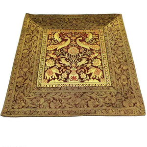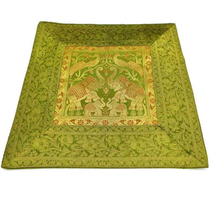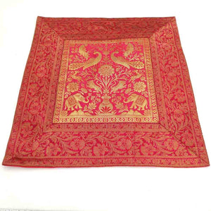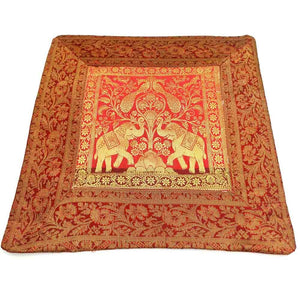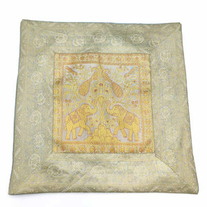 Cojín de seda de gran calidad decorado con animales sagrados orientales: elefantes y faisanes principalmente. Disponible en varios colores. Ideal para decoraciones. Medidas: 45 cm. *** El relleno de cojín se vende a parte aquí.