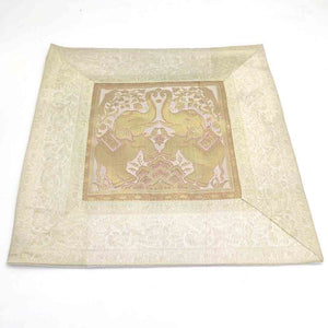 Cojín de seda de gran calidad decorado con animales sagrados orientales: elefantes y faisanes principalmente.