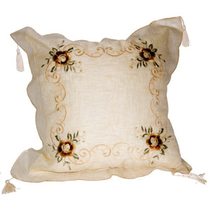 Cojin de seda de gran calidad. No se deje engañar por su precio. Diseño floral. Disponible en blanco y crema. No quedará arrepentido. Medidas: 50 cm. El relleno se vende a parte.