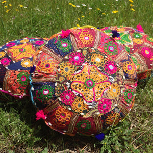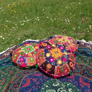 Cojín para yoga o meditación. Decorado artesanalmente con motivos indios.
