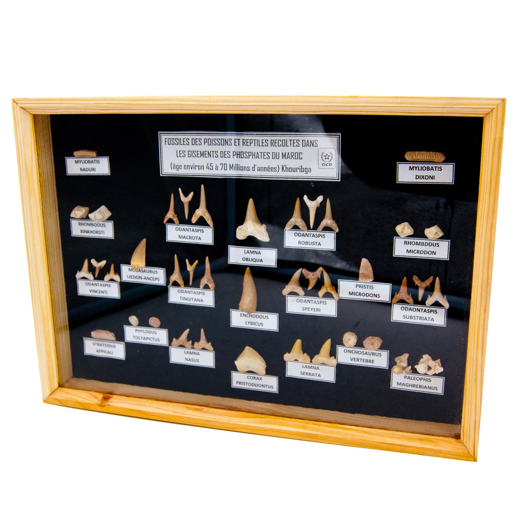 Colección Fósiles Dientes Tiburón - 45 - 70 Millones de Años - Vitrina De Cristal