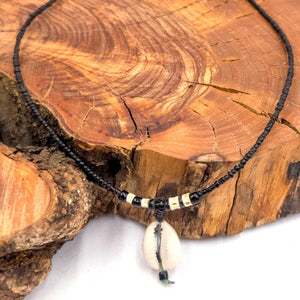 Collar colgante artesano de Senegal con concha cauri. Talla unica.