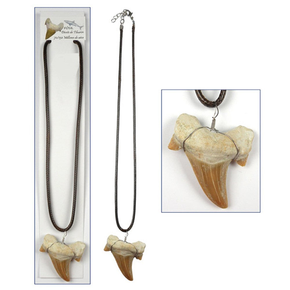 Colgante diente de tiburón con colgante de cuero.Medidas aproximadas del diente: 3 cm