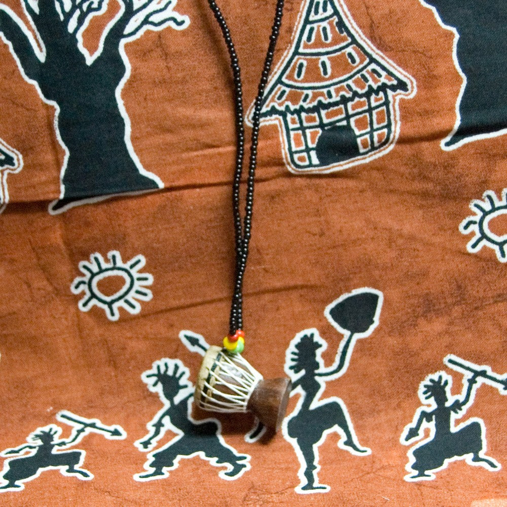 Colgante Djembe Africano-Artesano-25 cm- Madera - Piel - Cuerda