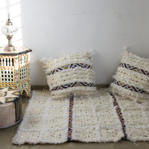 Conjunto Bereber - 2 Cojines + Alfombra - Blanco