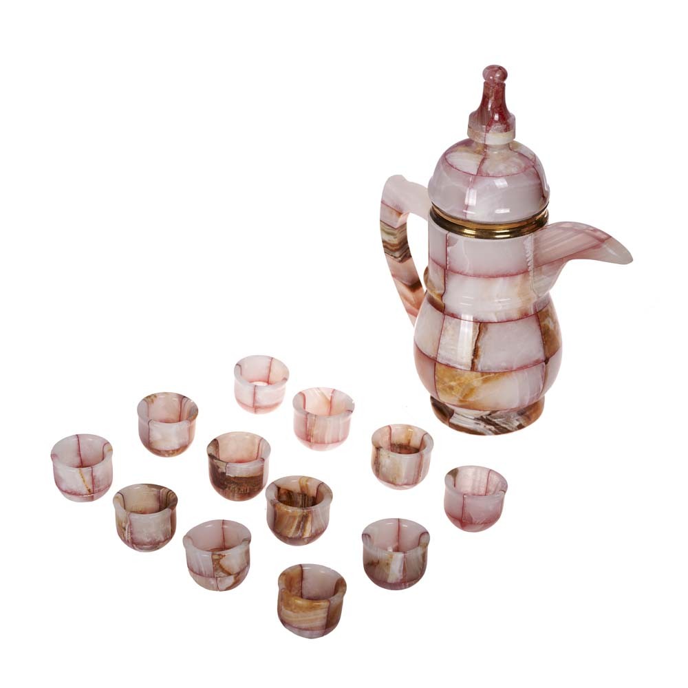 Conjunto de tetera/jarra y 12 vasos realizado artesanalmente en onix.