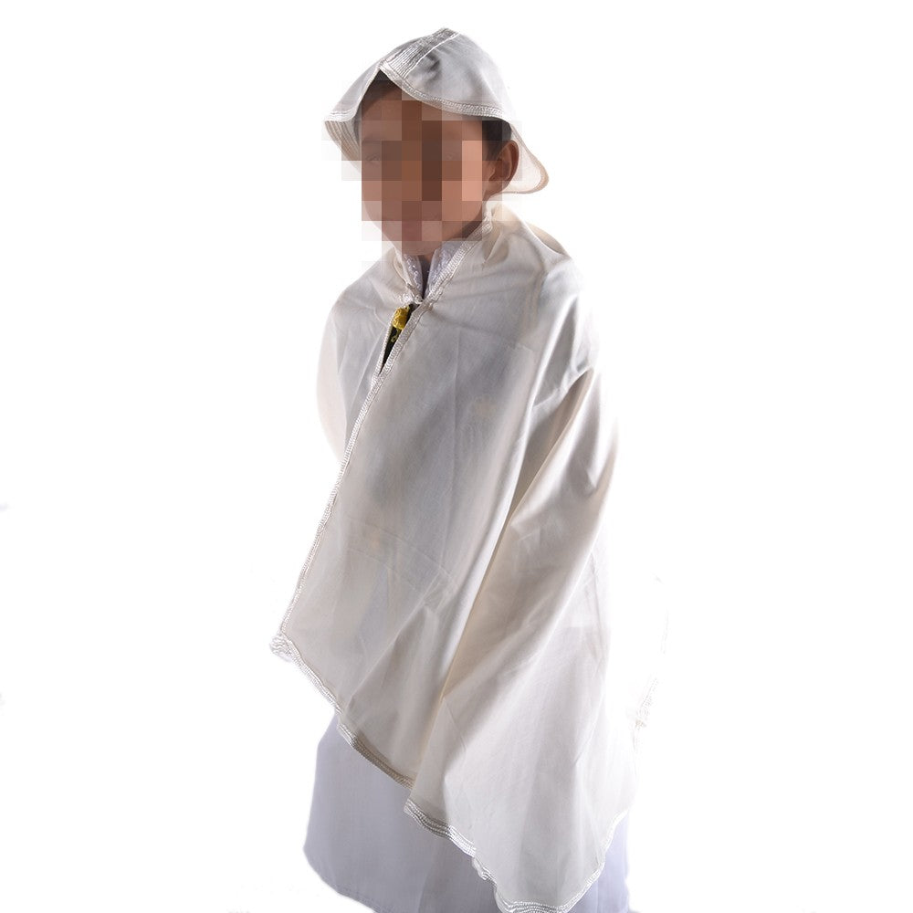 Conjunto 5 piezas ( Chilaba, chaleco, capa con gorro, babuchas amarillas y gorro moro)