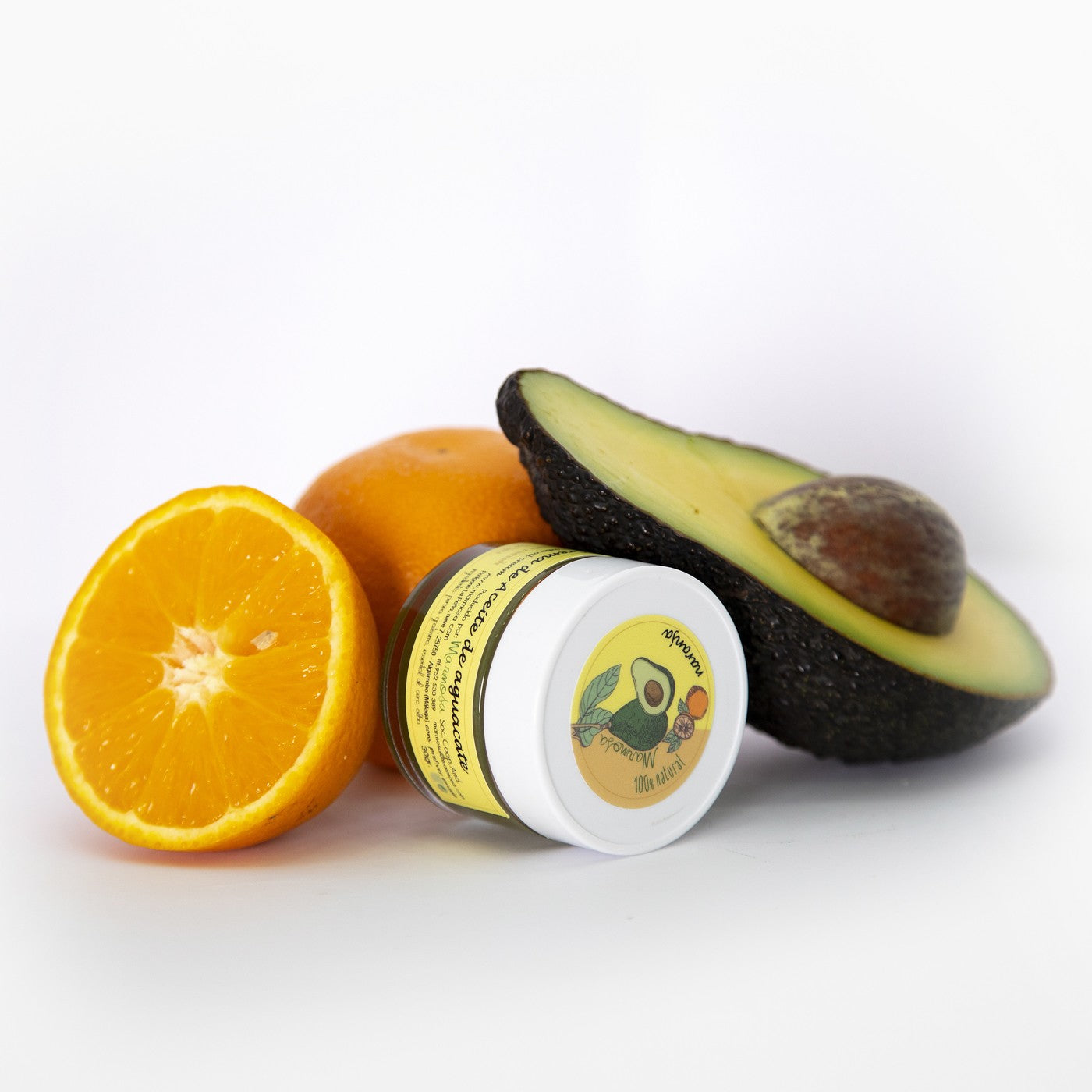 La crema de aceite de aguacate se elabora con aceite de aguacate natural, cera virgen de abeja y aceite esencial de naranja.