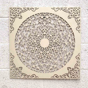 Cuadro Decorativo Celosía Madera Blanco Hueso - Decoración Oriental - Corte Láser - Modelo Esplendor - 60 x 60 cm