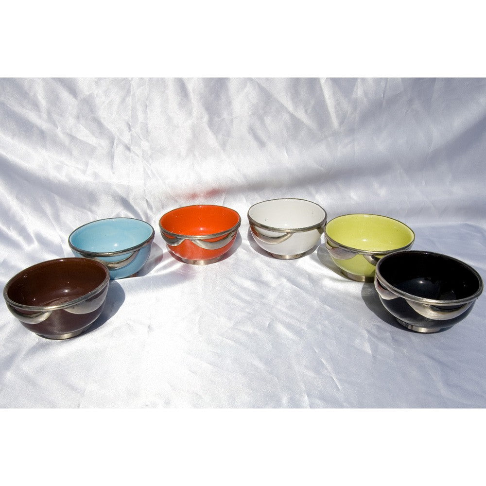 Cuenco artesano de cerámica decorado con alpaca. Muy bonitos y bien acabados. Disponible en varios colores. Medidas: 13 cm diámetro.