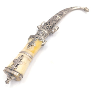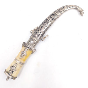 Daga o Puñal Estilo Árabe Artesanía Marroquí Ornamental Hueso y Alpaca Repujada Modelo Aladhmu