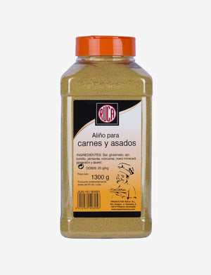 Mezcla de especias, condimentos y aditivos, de uso como sazonador culinario de carnes de uso en estofados y asados. No está sujeto a ninguna norma de calidad específica. Recomendamos su uso en el aliñado y elaboración de: