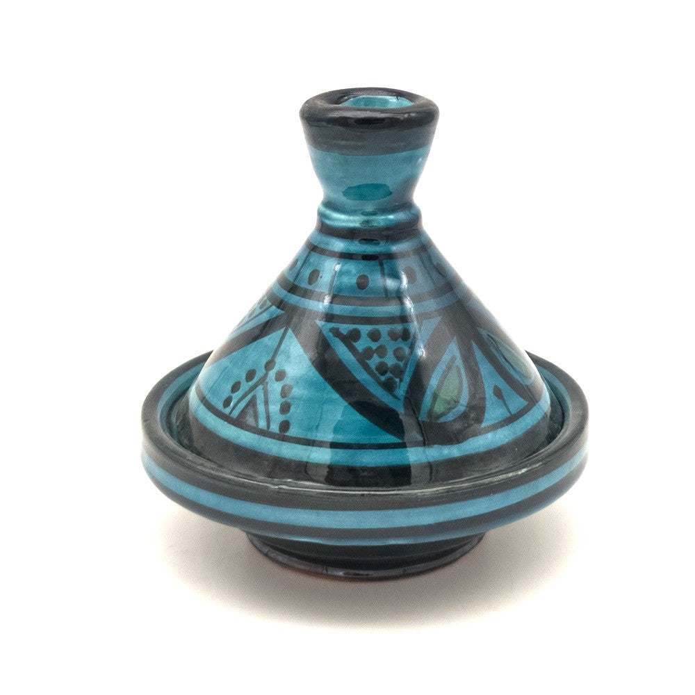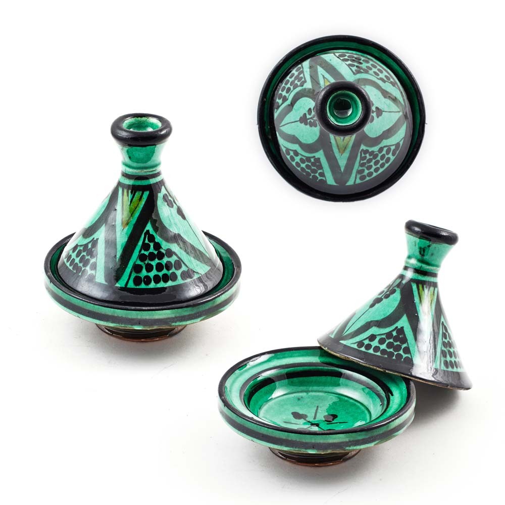 Tajin mini especiero realizado artesanalmente en cerámica esmaltada.Ideal para presentar especias como sal, pimienta o comino.Muy elegante en la mesa, sobre todo para platos árabes.Disponible en varios colores.Medidas: 10 cm alto.