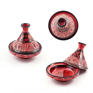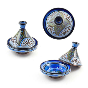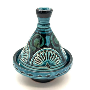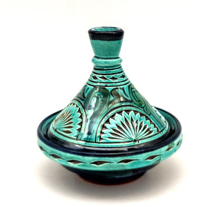 Tajin mini especiero labrada realizado artesanalmente en cerámica esmaltada.Ideal para presentar especias como sal, pimienta o comino.Muy elegante en la mesa, sobre todo para platos árabes.Disponible en varios colores.Medidas: 10 cm alto.