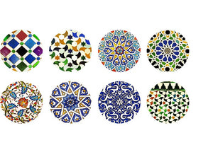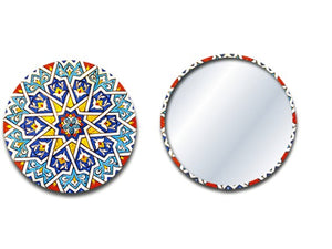 Espejos redondos de bolsillo con diseños inspirados en lacerias y patrones geométricos andalusíes,de alta durabilidad y calidad en sus acabados.