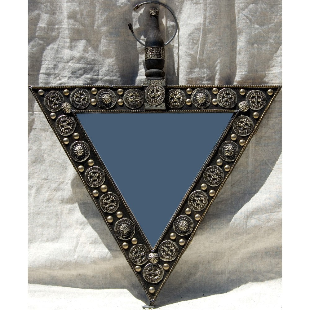 Espejo árabe triángulo hecho en alpaca. Muy bien acabado y muy bonito.