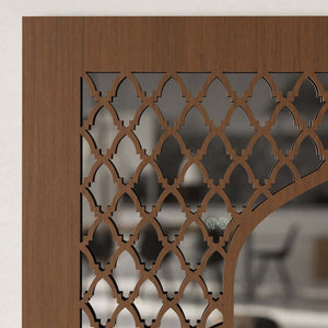 Espejo estilo árabe realizado artesanalmete por Jaima Alkauzar, con madera cortada por laser y ensamblado en Granada, producto nacional 100%.