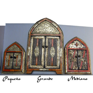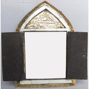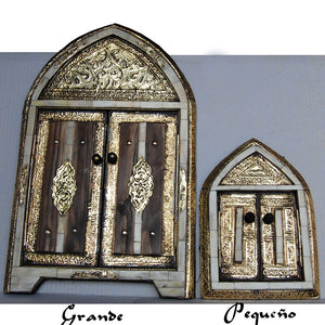 Espejo de hueso (naranja o blanco) y latón con puertas. Forma de arco. Tres tamaños.