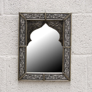Espejo árabe para decoración árabe con alpaca tallada. Ideal para la decoración árabe, andalusí, morisca. Ideal para decorar la entrada de la casa, el baño, o cualquier rincón de su hogar.