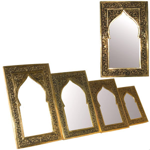 Espejitos de latón grabado con forma de arco árabe.Ideal para rincones árabes.Producto de gran calidad muy bien acabados.Disponible en varios tamaños:
