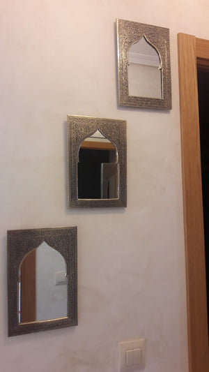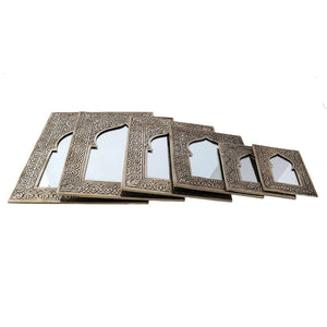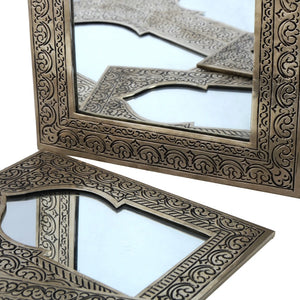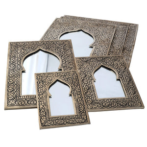 Espejitos de latón grabado con forma de arco árabe.Ideal para rincones árabes.Producto de gran calidad muy bien acabados.Disponible en varios tamaños.