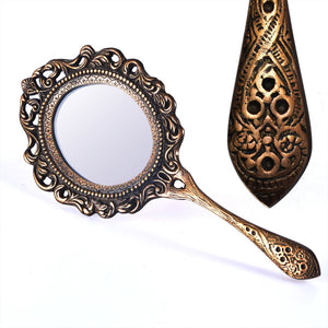 Espejo Mano Fundición Bronce Envejecido - Artesano - 26 cm