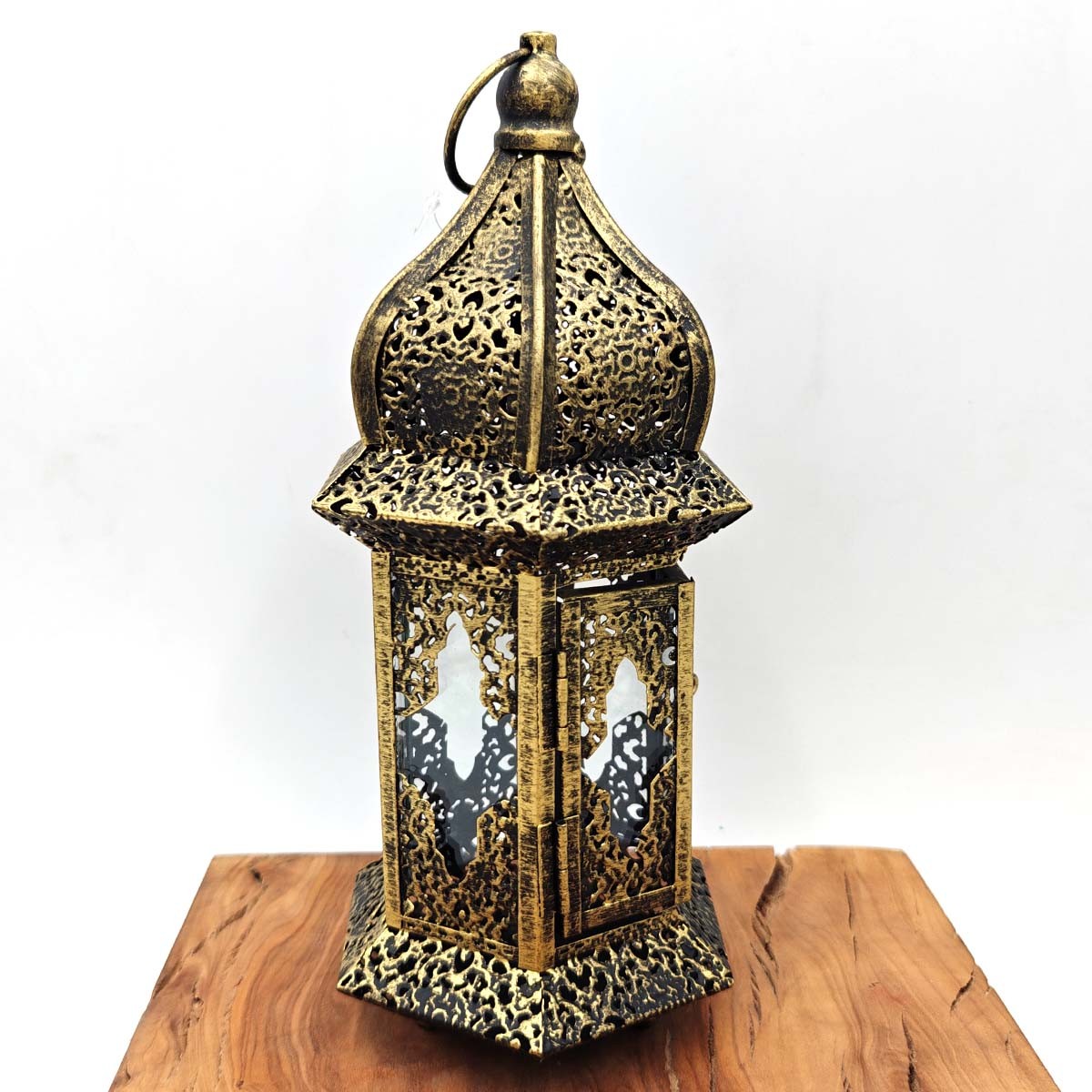Farol Árabe Calado - Dorado Envejecido - 26 cm x 12 cm - Modelo 036