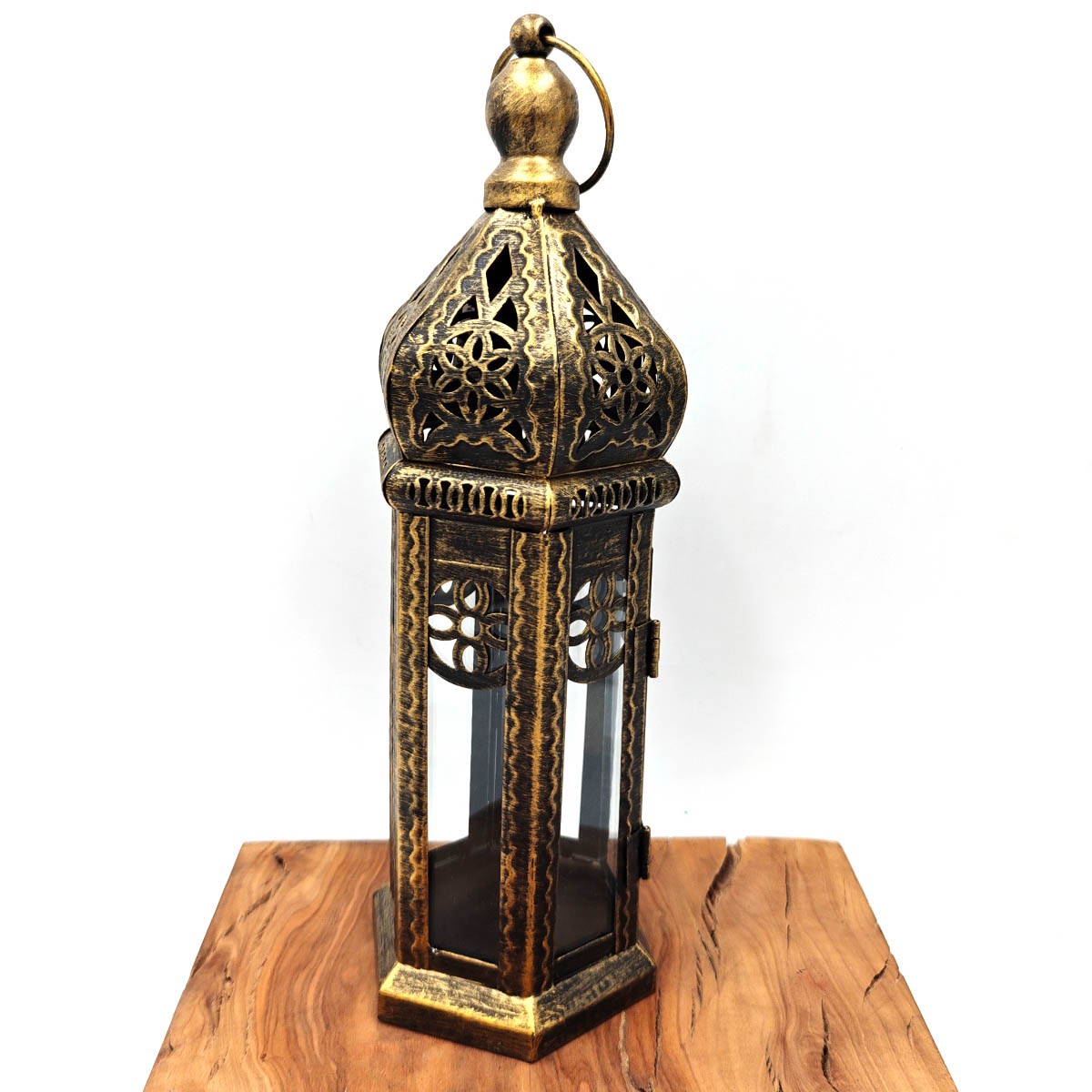 Farol Árabe Calado - Dorado Envejecido - 31 cm x 10,5 cm - Modelo 038