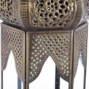 Farol de mesa Bronce Envejecido - Decoración Andalusí Artesanía Turca - Modelo Samarcanda - 67 cm