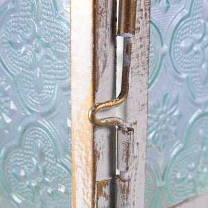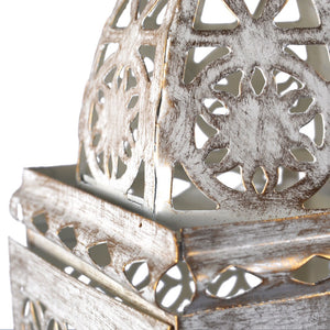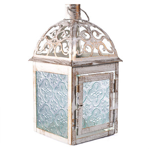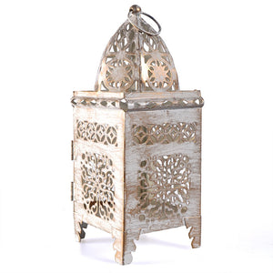 Farol Envejecido- Blanco- Rectángulo-Celosia Calada- 21 cm