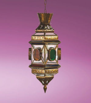 Lámpara granadina realizada artesanalmente con las técnicas y diseños usados por andaluíes en la epoca de Al-Andalus.